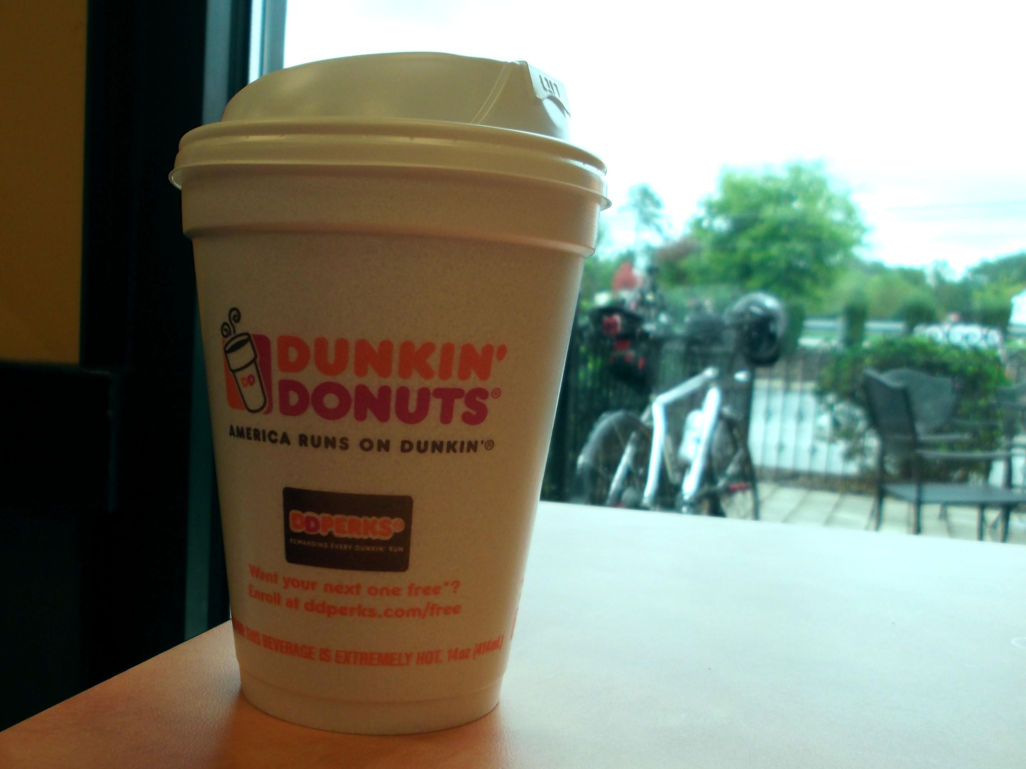 I rode five miles to a nearby Dunkin Donuts (6605 George Washington Memorial Hwy) along quiet back roads that are popular with my local bike club. My route included a shortcut on a one-way tour road. I resisted the urge to indulge in donuts or pastries. It all smelled good, though. I’m losing weight and just stuck with the hot chocolate.