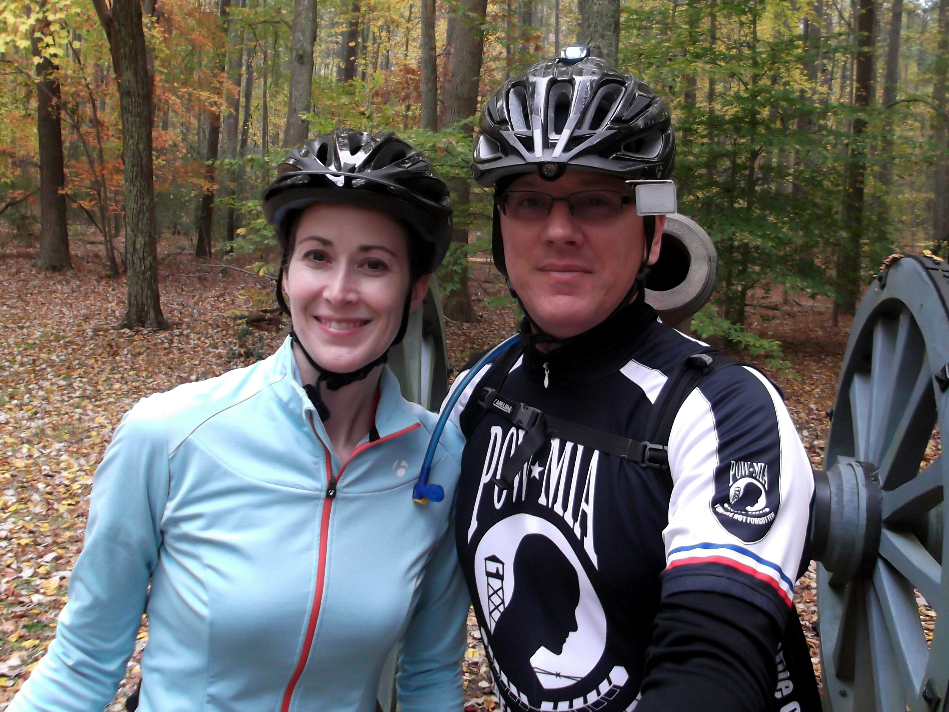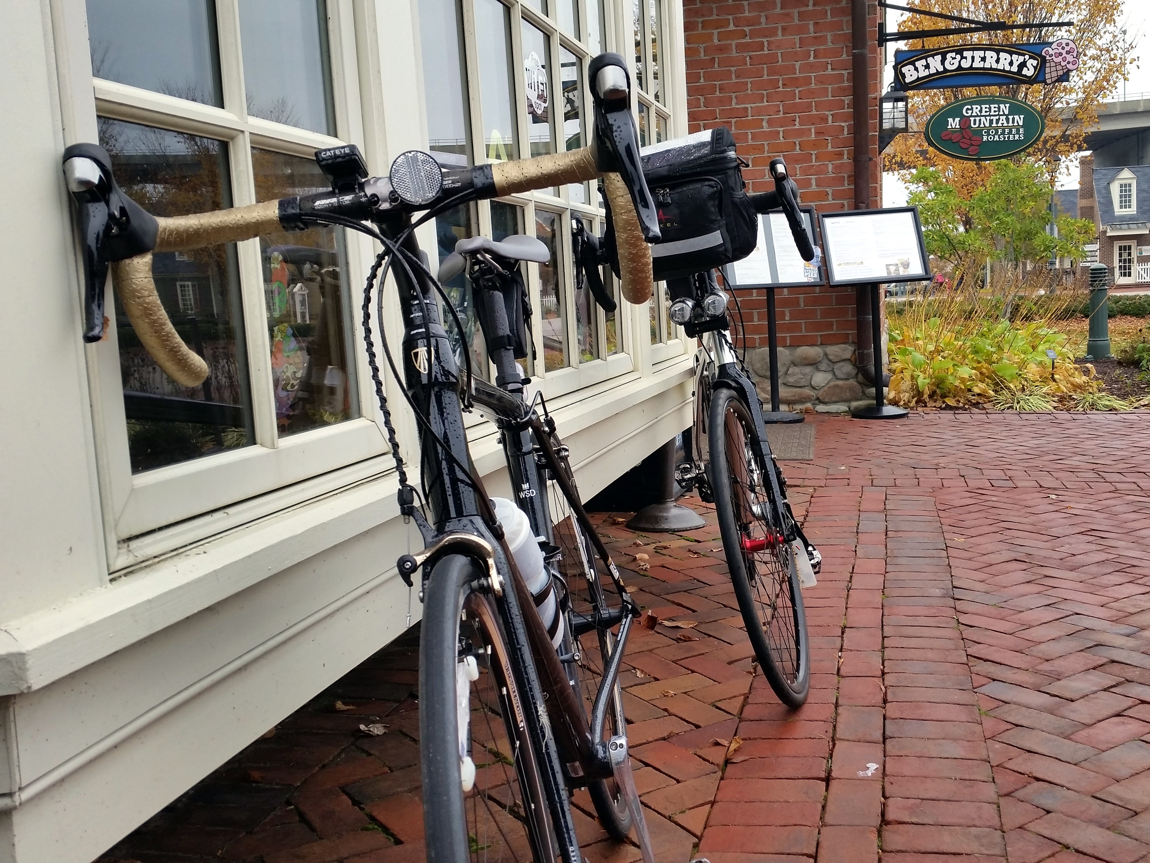 So that should be a wrap, seven drinks in seven weekends, right? Not so fast! A few weeks ago, I told you about a place I was going to visit. I felt like I was saving the best for last. I knew I wanted to do a coffeeneuring ride on Veterans Day and had saved a Yorktown ride in case of inclement weather. The weather wasn’t too much of a problem so far. But I still wanted to get a Veterans Day ride in the books. I invited my bride, aka my “life wife” (Joanne) to join me. She’s a “just-right weather” kind of rider. So riding with her is a rare treat. Plus, she had never been to my destination. So she was hooked and ready to ride. We drove to U.S. Coast Guard Training Center Yorktown (same location as Ride #2) and then rode 13-miles through the Battlefield tour roads. Basically, if you’re looking at the map, we rode the southern section of the red road, all the yellow, then went west on Goosley Rd until we connected with Yorktown Rd, which took us to the Yorktown Victory Center, and then continued to downtown Yorktown. We stopped at Ben & Jerry’s for our treat just as light rain was moving in.