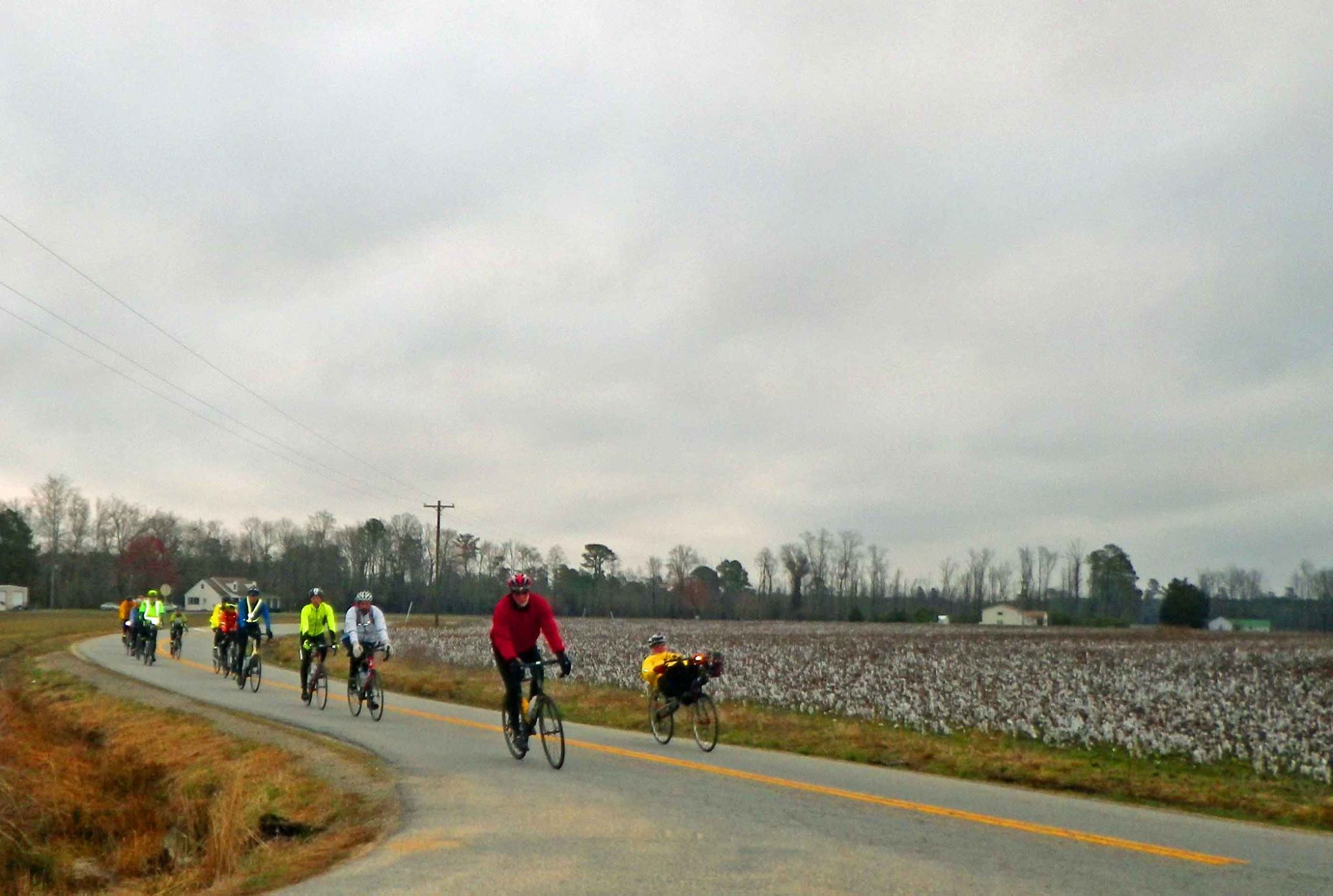 I arrived in Suffolk, VA and was pleasantly surprised to see the largest group I’ve ever seen on a Tidewater Randonneurs ride. I counted 17 riders, including a good friend, Tregg H., who was riding his first brevet. The group set off at sunrise and held a comfortable pace of ~15 mph. The pace then crept up a tad and the group began to separate. I told Tregg, “I don’t know how fast I’ll ride today, but I’m staying in this draft while I can.” He and I hung on for about 13 miles. Neither of us had a 19-mph pace in us, especially not for 100+ miles. We settled into a 16-17 mph groove and eventually had out-of-sight riders in front of us and behind us. I felt good at our first control point in Boykins, VA, 39 miles into the ride. Our brevet administrator signed our control cards and had snacks, water and Gatorade on hand. We had a couple of cookies (thanks Kim S!), topped-off fluids and hit the road.