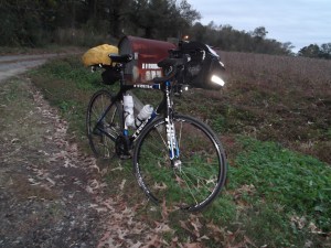 I had been off the bike for a couple of weeks due to rain and minor medical issues. It was nice to get another ride toward an R-12 award on November 4th. Jacob Anderson was leading his 204-km Southern Sojourn. The weather was clear but cold at 40-degrees. I figured this was a good chance to try the ride again without the rain. 🙂 It was also a great opportunity to shake down my new handlebar bag, run my lighting system, and to try dressing appropriately before the weather was too cold to manage any clothing selection mistakes. I wore tights, knee warmers, toe warmers, two summer jerseys, arm warmers, and a lightweight jacket. I thought it was too much. But I was initially cold and then warmed up… just the way it’s supposed to work. Continue reading “Southern Sojourn Permanent – Run #2 (127-mi)”